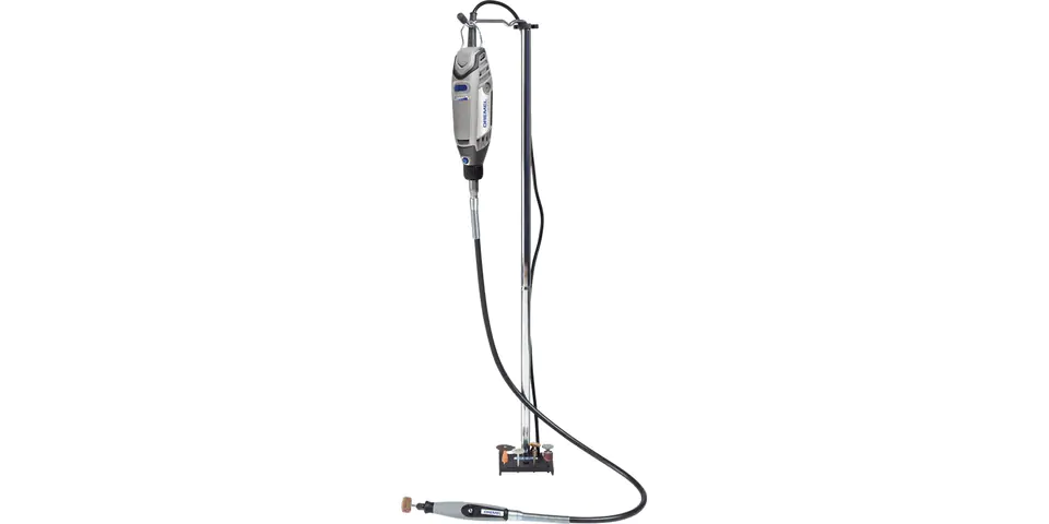 Zyskaj więcej miejsca do pracy dzięki statywowi umożliwiającemu zawieszenie narzędzia, przewodu, a także przechowywania potrzebnych akcesoriów – wszystko w jednym miejscu.