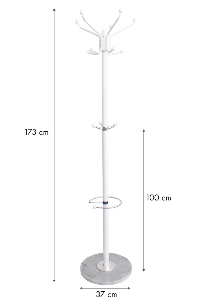 Dzięki dużej okrągłej podstawie wykonanej z marmuru wieszak jest bardzo stabilny i można na nim wieszać nawet bardzo ciężkie kurtki, bez obaw o jego przewrócenie. Dodatkowo taka podstawa ze srebrnym akcentem nadaje wieszakowi klasycznego stylu pasującego do wszystkich wnętrz.