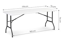 - Wymiar blatu 180x74 cm zapewniający komfort: doskonale sprawdzi się na wszelkiego rodzaju imprezach w domu, jak i w plenerze. Grubość blatu (wysokość rantu na obrzeżu) 3,4 cm.
