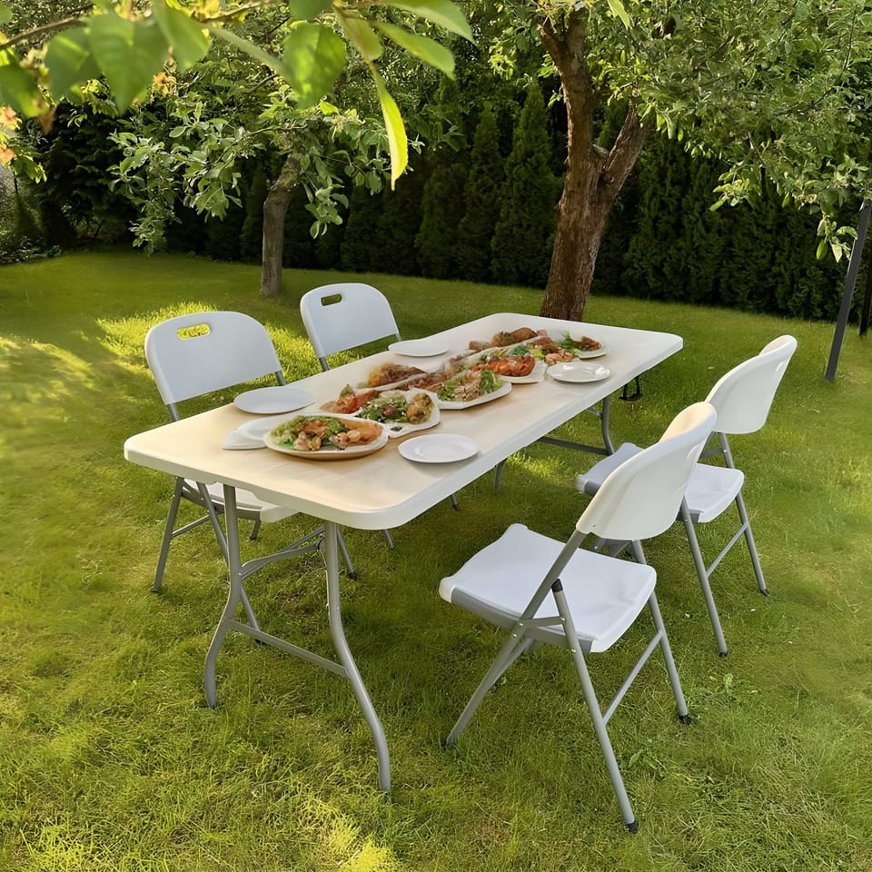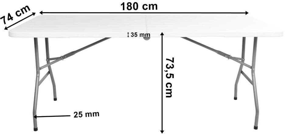 Stół cateringowy FETA składany w walizkę 180 cm białyModel: FETA | Rozmiar: 180 cm | Kolor: białyBardzo praktyczny i lekki stół cateringowy. Konstrukcja wykonana ze stali. Blat wykonany z mocnego tworzywa sztucznego. Stolik po złożeniu tworzy praktyczną walizkę dzięki czemu zajmuje małą przestrzeń i jest łatwy do przeniesienia. Doskonale sprawdzi się na kempingu. Dzięki unikalnemu projektowi całość konstrukcji chowa się w blat stołu. Bardzo łatwy w transporcie. Najwyższej jakości mocne tworzywo użyte do produkcji blatu czyni go najmocniejszym i najgrubszym z oferowanych na polskim rynku. WłaściwościStabilna konstrukcjaSprawny i solidny system rozkładania i składania.Materiał blatu: polietylen HDPE100% wodoodpornyTrwałość przez wiele sezonówMateriał stelaża: stal malowana proszkowoSkładany, wygodne rączki do transportuLekki, zajmuje mało miejsca po spakowaniuNogi ze wspornikami z blokadąAntypoślizgowe stopy zapewniają stabilnośćMaksymalne obciążenie stołu: 150kgWaga: 11kgWymiary produktuStół rozłożony:Długość: 180 cmSzerokość: 74 cmWysokość do górnej części blatu: 73,5 cmWysokość do dolnej części blatu: 70 cmGrubość blatu na obrzeżach: 3,5 cmGrubość metalowej ramy: 25 mmRozstaw nóg: 57 x 155 cmStół złożony w walizkę:Wysokość: 74 cmSzerokość: 92,5 cmGrubość: 7 cm Informacje dodatkowePrzedstawione kolory należy traktować poglądowo - mogą odbiegać od rzeczywistych ze względu na różne ustawienia monitorów oraz proces obróbki zdjęć. Rzeczywiste wymiary mogą się różnić od podanych wyżej. Tolerancja błędów może wynosić +/- 5%.UWAGA | Integralną częścią zestawu jest opakowanie zewnętrzne - karton. Oznaczenia na kartonie mogą się różnić ze względu na różne serie dostaw. Marka:eHokeryKod produktu:STÓŁ FETAKod EAN:5902340310205Kolor:białyWysokość: 73,5 cmSzerokość:180 cmMateriał blatu:polietylen HDPEMateriał nóg:stal malowana proszkowoPrzeznaczenie:jadalnia | kuchnia | kamping | restauracjaDo samodzielnego montażu:nie wymaga