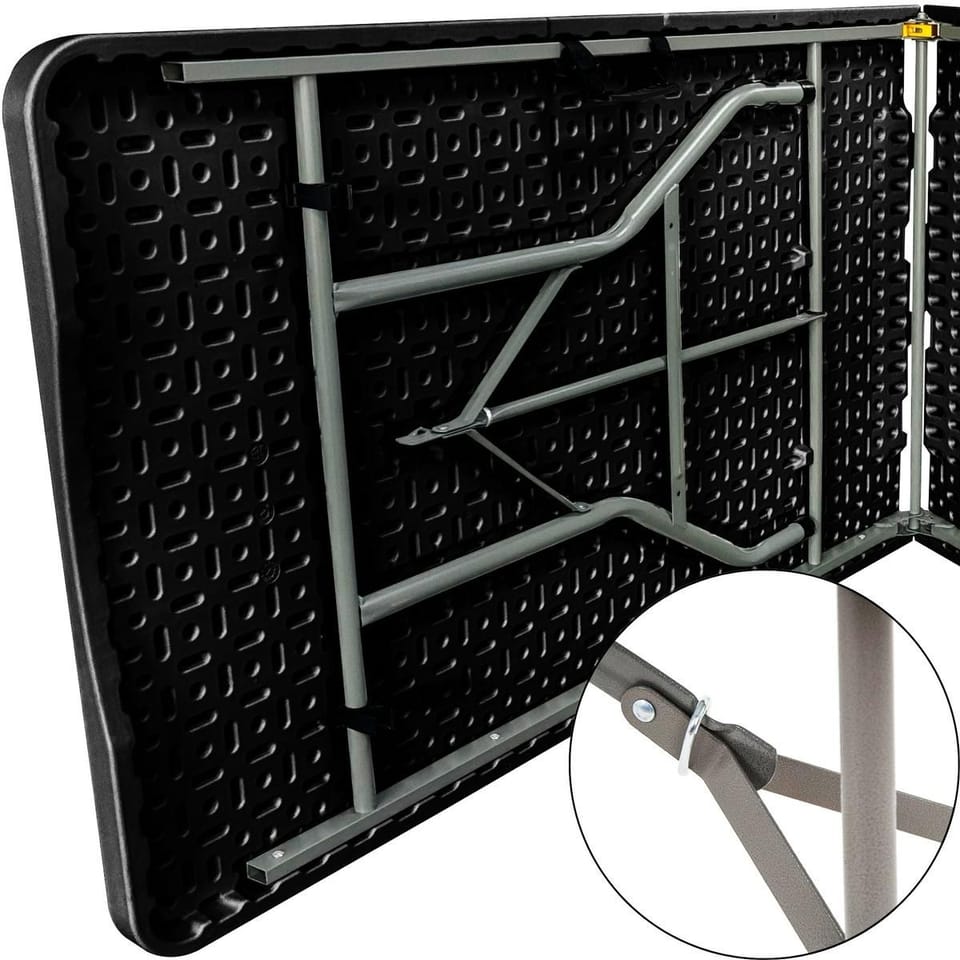 STÓŁ CATERINGOWY SKŁADANY W WALIZKĘ 240x74x74CM 150KG CZARNY to solidny stół o długości 240 cm, który wytrzyma aż 150 kg obciążenia, a po złożeniu zmieści się w formie walizki do bagażnika – idealny na każdą okazję./p>