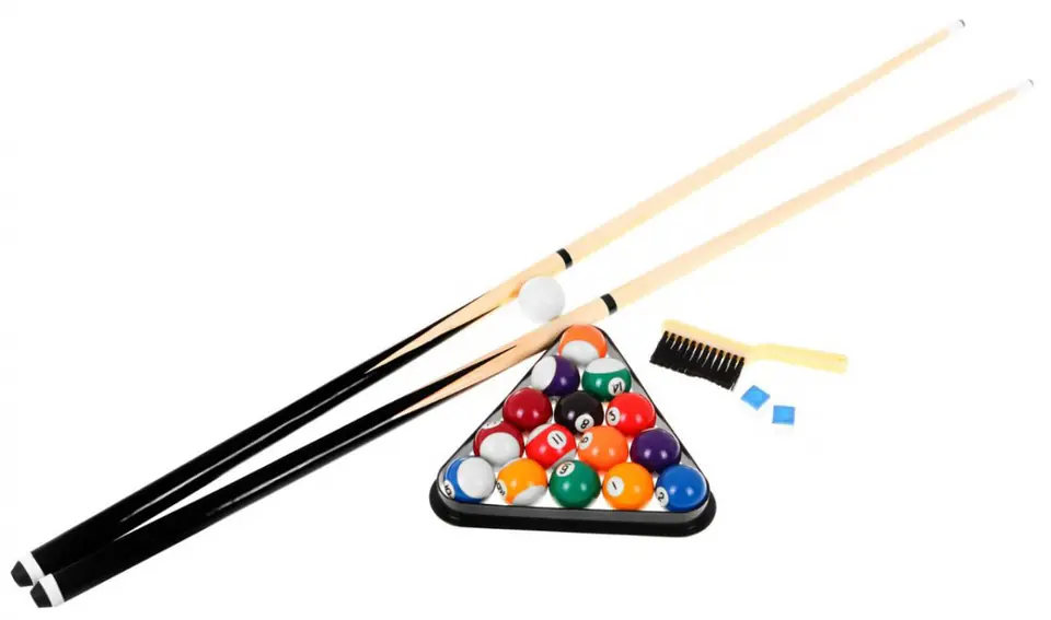 - 16 bill wykonanych z solidnego materiału - kompletny stół- 2 x kije - komplet 16 bil - 2 x kreda - trójkąt do ustawiania bil - szczotka do czyszczenia sukna - zestaw montażowy - instrukcja | |