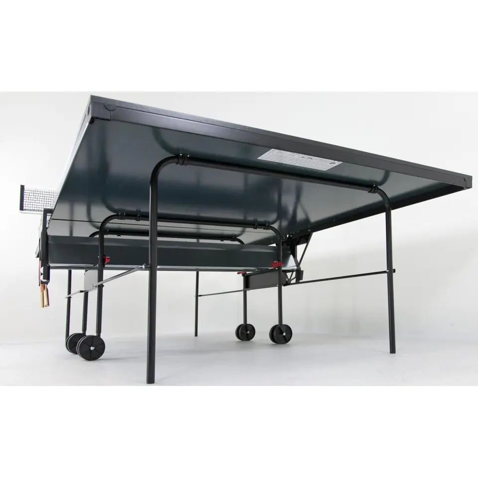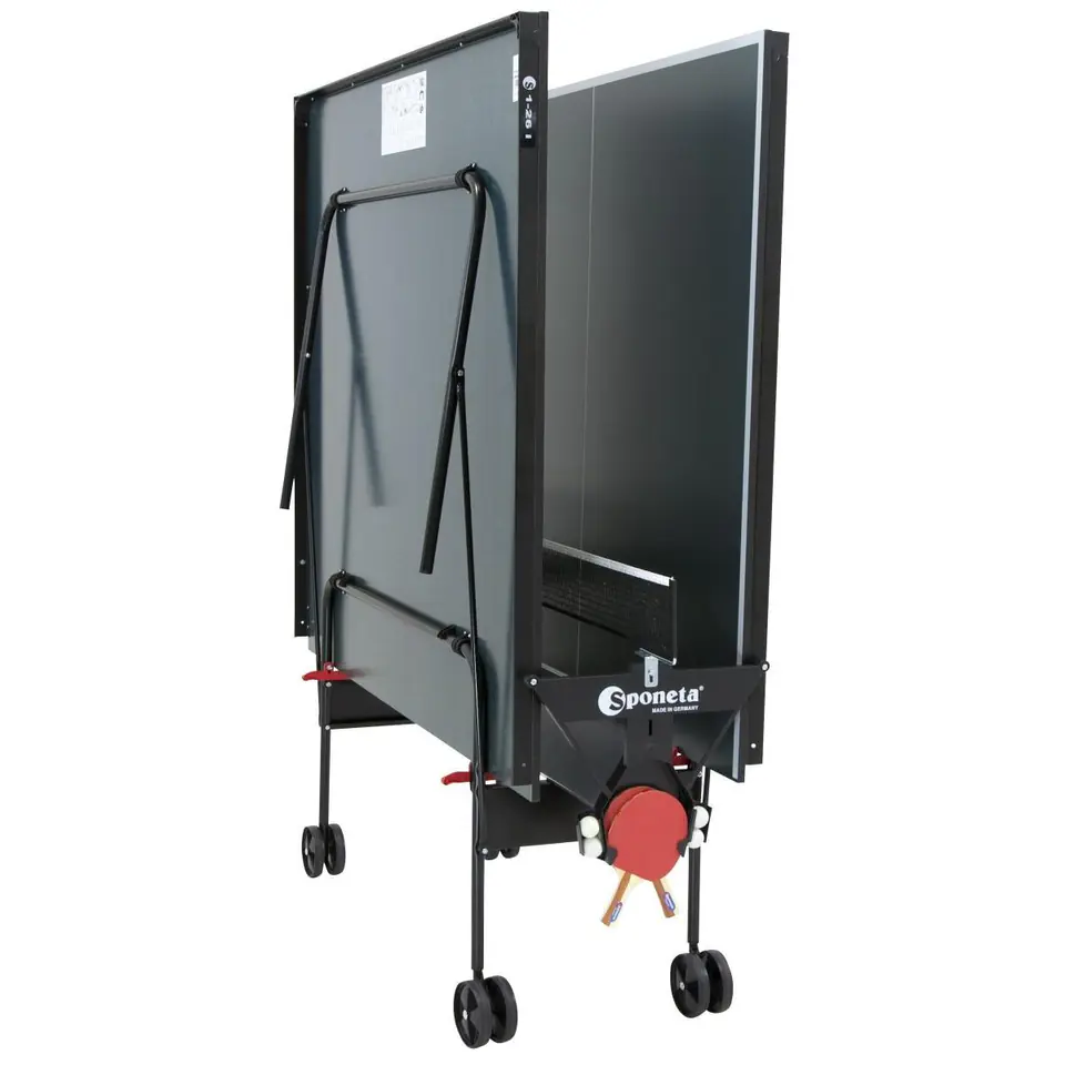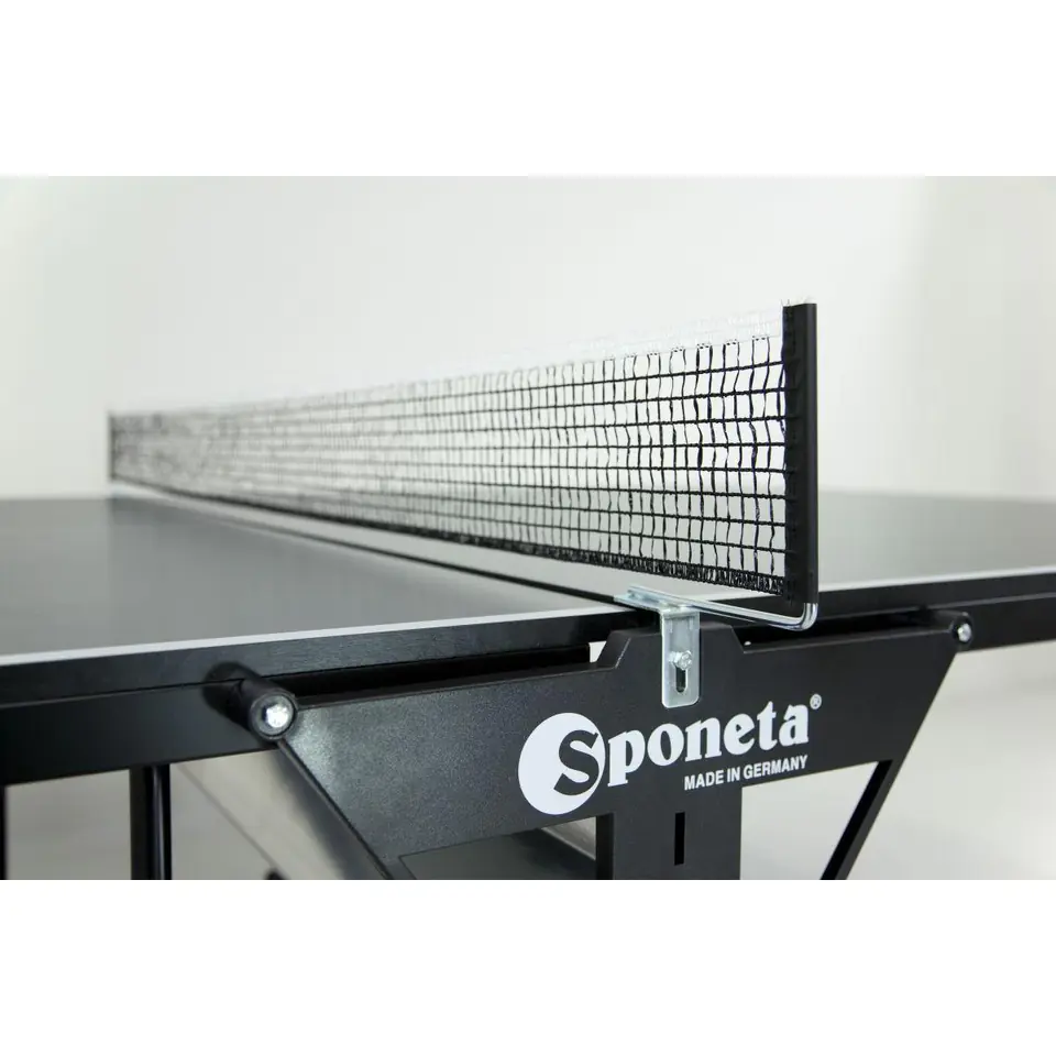 • Sponeta S1 HOBBY LINE klasy D• zgodny z normą EN 14468-1• Idealny dla początkujących i gry rekreacyjnej• Posiada certyfikat PEFC• Stół wewnętrzny, nieodporny na warunki atmosferyczne• Nadaje się tylko do suchych pomieszczeń wewnątrz budynku• Nieodporny na ciepło, zimno, bezpośrednie działanie promieni słonecznych i wilgoć (wilgotność względna powyżej 60%)• Po obu stronach uchwyty na rakietki oraz piłeczkiParametry:• Wymiary: długość 274cm / szerokość 152,5cm / wysokość 76 cm (oficjalny światowy standard)• Wymiary do przechowywania: długość 159 cm / szerokość 66,5 cm / wysokość 188,5 cm• Waga brutto: 68 kg• Waga netto: 62,5 kg• Blat:- Płyta wiórowa 3tec WOOD premium16 mm - Kolor: zielony- Metalowa rama wokół blatu zwiększa jego wytrzymałość- Profil ramy L-36 mm, powleczony proszkowo - Kolor profilu ramki: czarny (RAL 9005)• Podstawa:- Typ 4a (Automatic) - Ruchomy model z podstawą i dwoma oddzielnymi skrzydłami, każde może być niezależnie składane. Wymiary do przechowywania: ok. 40 x 190 cm. Sztaba bezpieczeństwa blokuje przypadkowe złożenie stołu. - 4 podwójne koła o średnicy 125 mm , 2 koła skrętowe- Kolor stelażu: czarny (RAL 9005) - Prosty mechanizm blokujący: System na hak (Hook System)• Norma europejska: EN-Norm 14468-1• W zestawie: stół, siatka w kolorze czarnym, Instrukcja montażu• Marka: Sponeta / Linia: HobbylineSponeta to Niemiecka marka zajmująca się produkcją stołów i akcesoriów do tenisa stołowego, której produkty są dostarczane do 90 krajów. Wieloletnie doświadczenie oraz doskonałe opinie dają gwarancje zadowolenia z zakupu. Produkty firmy Sponeta są cenione zarówno przez profesjonalistów jak i amatorów tenisa stołowego.TOWAR WRAŻLIWY NA USZKODZENIA W TRANSPORCIE, PROSZĘ O SPRAWDZENIE PACZKI PODCZAS ODBIORU PRZY KURIERZE.