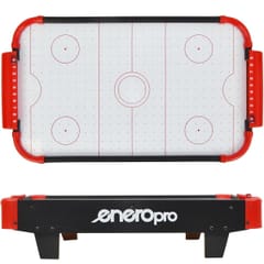 - wyposażony w wentylator zasilany na baterie wydmuchujący do góry powietrzezaokrąglone boki zadbają o bezpieczeństwo graczy podczas szybkich akcjimanualne liczniki po obu tronach stołu wskażą każdy zdobyty punktpole do gry z wydmuchiwanym powietrzem do złudzenia przypomina taflę lodupo obu stronach ustawiono duże bramki, wychwytujące krążekwykonany z trwałej i mocnej płyty MDFwyposażony w stabilne stopkidla dzieci powyżej 3 roku życia