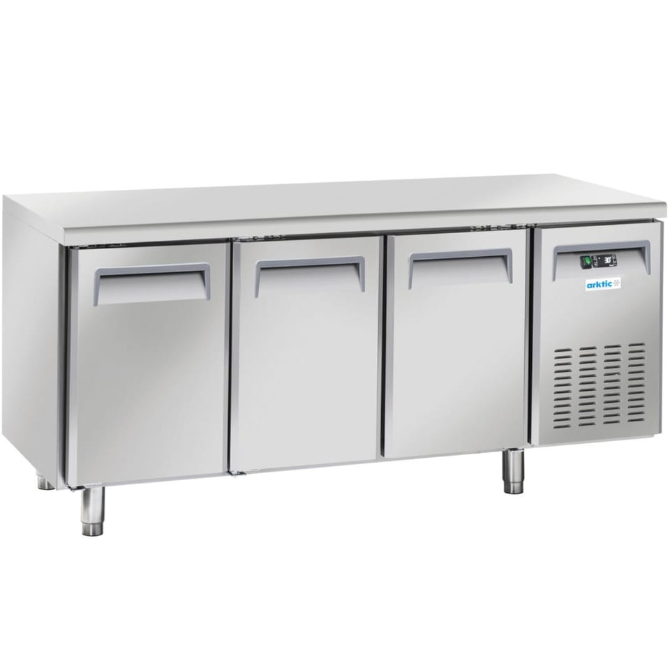 Kod produktu: 1030709Stół mroźniczy HENDI 3-drzwiowy z bocznym agregatem wykorzystuje przyjazny dla środowiska czynnik chłodniczy R290, a izolacja cyklopentanową o grubości 60 mm i chłodzenie z wymuszoną cyrkulacją powietrza zapewniają wydajną i równomierną pracę urządzenia. Zaokrąglone narożniki ułatwiają czyszczenie, a samozamykające się drzwi pomagają zachować idealną temperaturę wewnątrz komory.Cechy produktu: