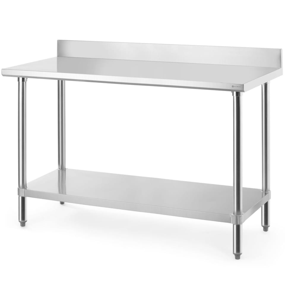 Kod produktu: 1031026Stół przyścienny z półką, skręcany firmy HENDI ma trwałą i łatwą do czyszczenia powierzchnię roboczą. Blat oraz półka zostały wykonane ze stali nierdzewnej i posiadają udźwig po 130 kg. Półka jest bezpiecznie połączona z nogami za pomocą aluminiowych kołnierzy. Nogi posiadające regulacje wysokości zapewniają stabilność na nierównych podłogach. Wykończony praktycznym rantem tylnym blat został zaprojektowany z myślą o intensywnym, codziennym użytkowaniu.Cechy produktu: