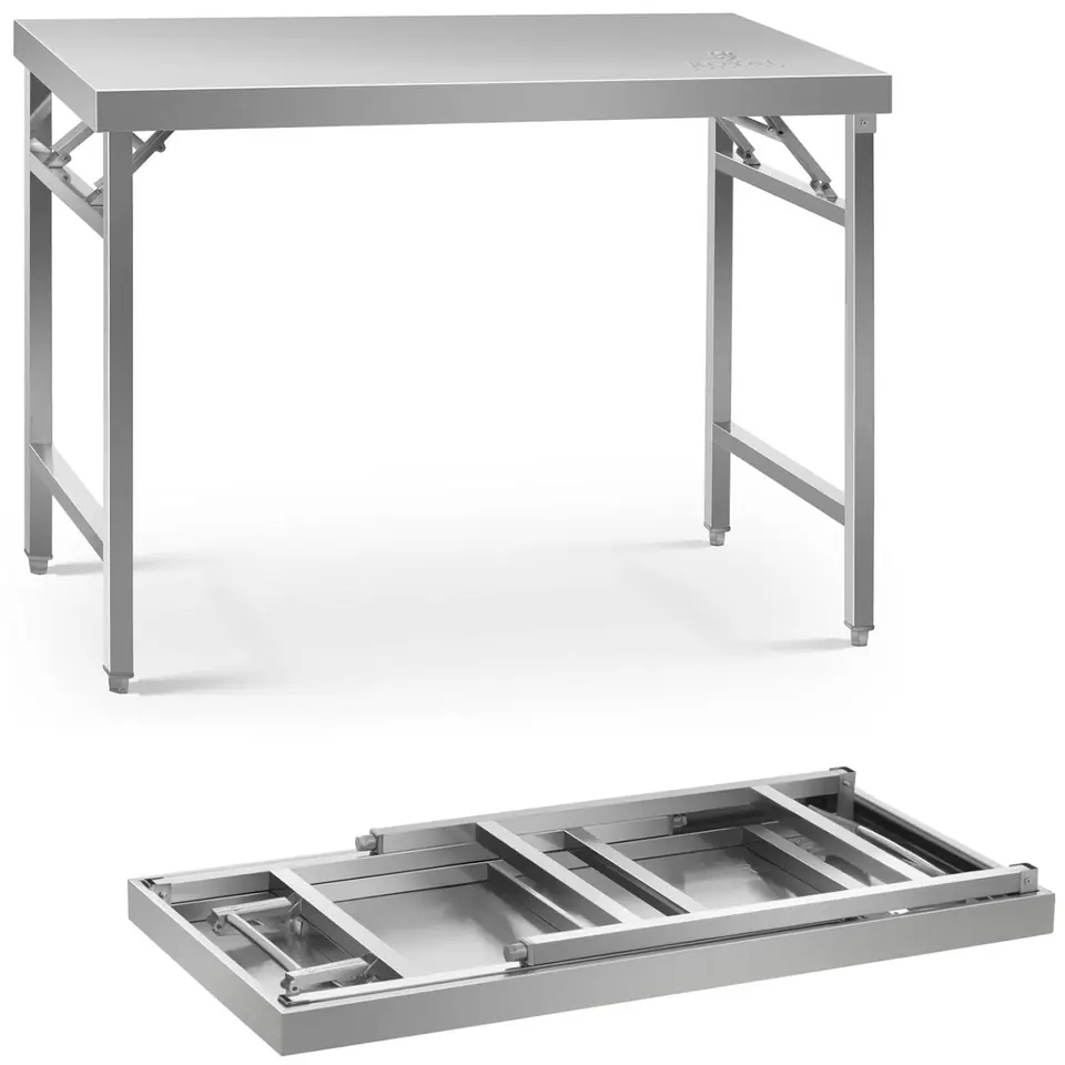 Kod producenta: 10011483Stół ze stali nierdzewnej marki Royal Catering to doskonałe rozwiązanie dla branży laboratoryjnej jak również gastronomicznej.Stół posiada system składania sprężynowego - w szybki i łatwy sposób można go złożyć i transportować. Został wykonany ze stali nierdzewnej co jest gwarancją trwałości i stabilności w trakcie pracy. Jest odporny na korozję, uporczywe zabrudzenia i uszkodzenia mechaniczne. Nie wchodzi w reakcje z żywnością, jest bezpieczny dla zdrowia. Blat o wymiarach 120x70 cm zapewnia dużo miejsca a wysokość 85 cm daje komfort użytkowania. Dzięki regulowanym nóżkom wysokość stołu można zmienić w zakresie +/- 10mm. Udźwig stołu wynosi 215 kg.Cechy produktu: