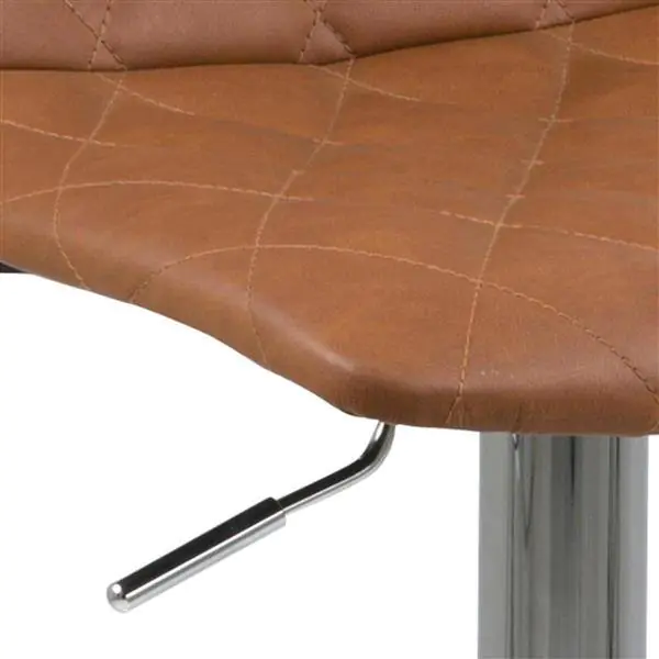 Prezentowany model powstał w wyniku połączenia chromowanej stalowej nogi i tapicerowanego siedziska skóropodobnego w kolorze jasnobrązowym. Stołek barowy Emu ma regulację wysokości, dzięki czemu można dopasować go do innych mebli. Wygodę jego użytkowania zapewnia nie tylko miękkie siedzisko, ale i zamontowany podnóżek.