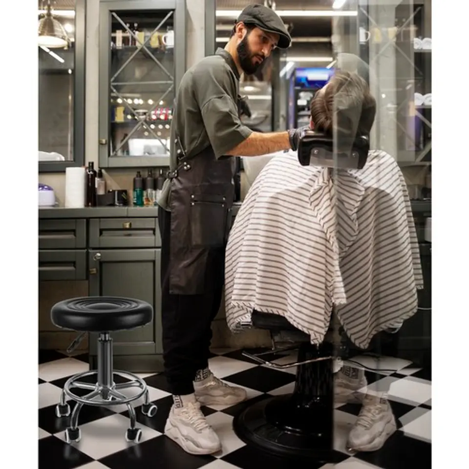 - SPECYFIKACJA - kolor siedziska: materiał: pokrycie siedziska: PU, wypełnienie siedziska: drewno + gąbka, stelaż: żelazo + PVC + PP; max. obciążenie: 150 kg; wysokość siedziska: 5 cm; średnica siedziska: 32 cm; średnica koła do podparcia nóg: 38 cm; regulacja wysokości: 43-54 cm; szerokość podstawy: 40 cm; waga: 2,77 kg; waga z opakowaniem: 3,2 kg.