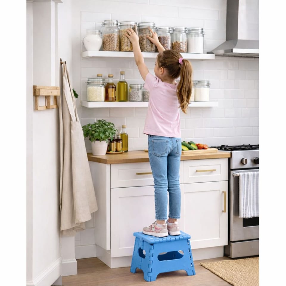 Produkt sprawdzi się jako pomoc dla dzieci przy umywalce, wsparcie podczas sięgania do wyższych półek, dodatkowe siedzisko w domu, a także jako praktyczny stołek turystyczny podczas kempingu, podróży czy wędkowania. Stołek składany łączy w sobie funkcjonalność, bezpieczeństwo oraz nowoczesny, prosty design, dzięki czemu pasuje do każdego wnętrza i zastosowania.