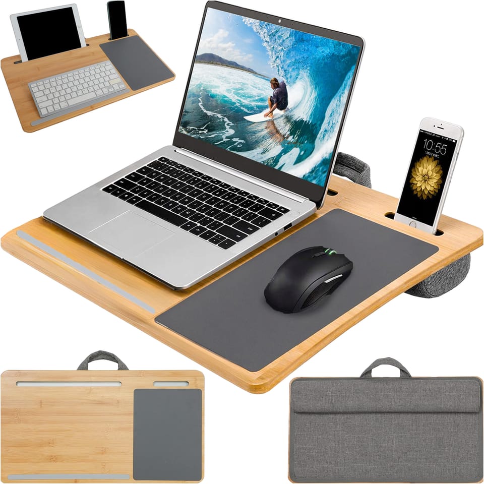 Stolik pod laptopa podstawka uchwyt na telefon tablet podkładka pod mysz Alogy bambusowa na kolana do łóżka