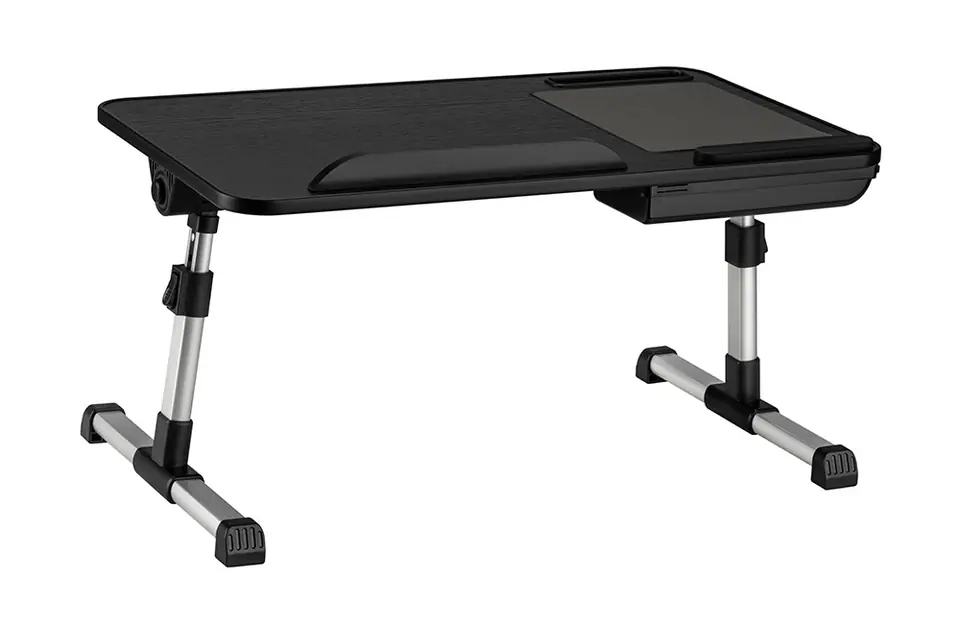 Z uwagi na fakt, że stolik regulowany SPR-Beddy M został zaprojektowany z myślą o tym, żebyś mógł go wykorzystywać jako podstawkę pod laptopa, jest on wyposażony w podkładkę pod myszkę, żebyś mógł korzystać z pełni możliwości swojego komputera bez obawy o porysowanie stolika. Co więcej, wyciągana szuflada zapewni Ci przestrzeń, chociażby dla Twojego telefonu, a nowe zatrzaskowe przyciski pozwalają na szybszą regulację pochyłu i wysokości, niż korbki, często stosowane w tego rodzaju produktach. Dodatkowo warto wspomnieć, że po złożeniu stolik regulowany na łóżko SPR-Beddy M zajmuje na tyle niewiele miejsca, że możesz go schować bez problemu np. pod łóżkiem.