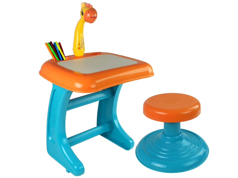 Stolik Tablica Do Rysowania Krzesełko Projektor Pomarańczowy Pisaki Obrazki