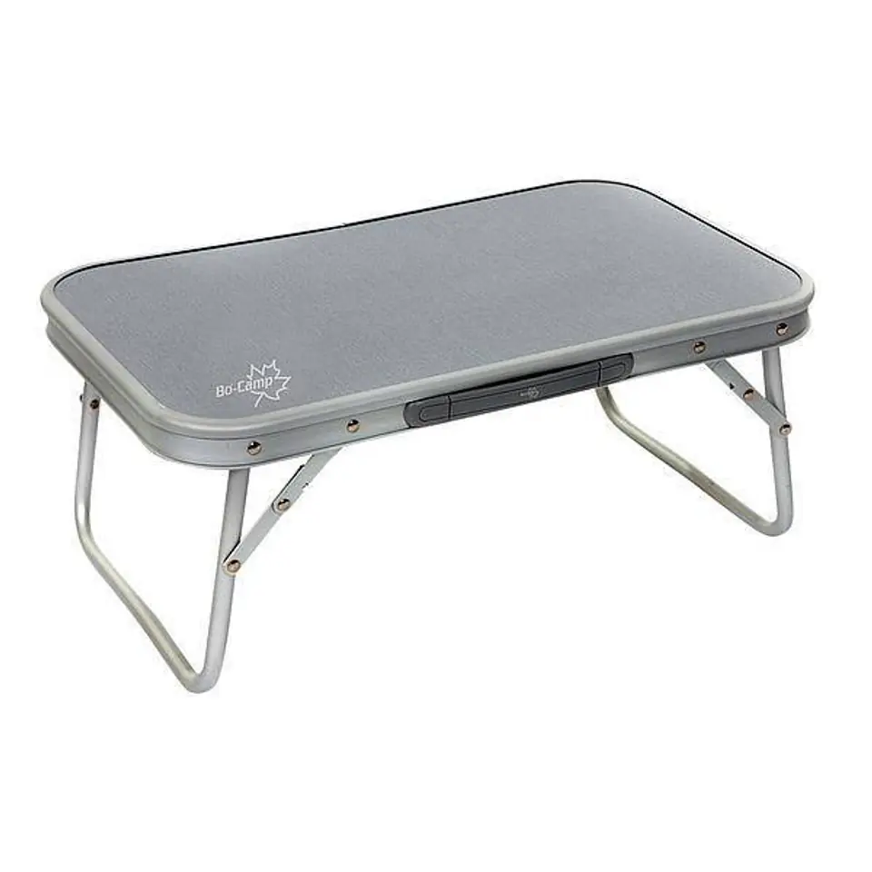 Bardzo niski i kompaktowy stolik. Wykonany z wytrzymałego i lekkiego aluminium.Składane nóżkiWymiaryWysokość: 24 cmSzerokość: 56 cmGłębokość: 34 cmDane techniczneMateriał: rama aluminium / blat płyta MDFKolor: antracytWymiary po złożeniu: 36x57x4cmWaga: 1,55kg