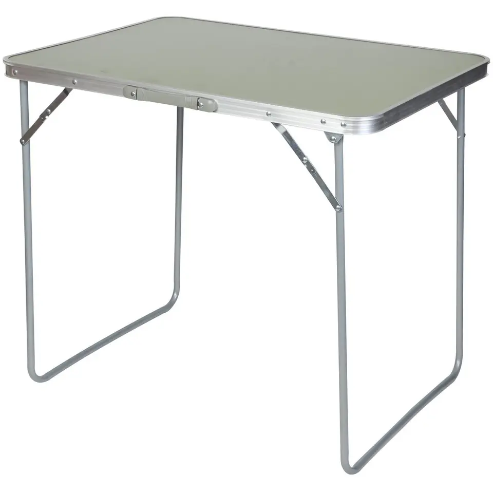 - Wymiary: 80 x 60 x 70 cm (szer. x gł. x wys.)Wymiary po złożeniu: 80 x 60 x 5 cm (wys. x szer. x gł.)Grubość profilu blatu: 3 cmGrubość rurki: 16 mmMateriały: stelaż – stal, aluminium, blat - płyta MDF 5mmKolor blatu: military greenWaga netto: 3 kgWaga brutto: 3,5 kgMaksymalne obciążenie: 30 kg