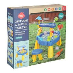 Czy da się połączyć ze sobą fontannę i piaskownicę? Jak najbardziej – stolik wodny dla dzieci jest idealnym tego przykładem. Do stolika dołączono łopatkę, grabki, wiaderko, konewkę i foremki, które uświetnią zabawę w domu oraz na plaży.