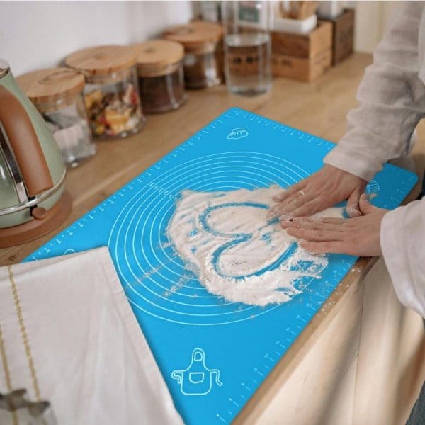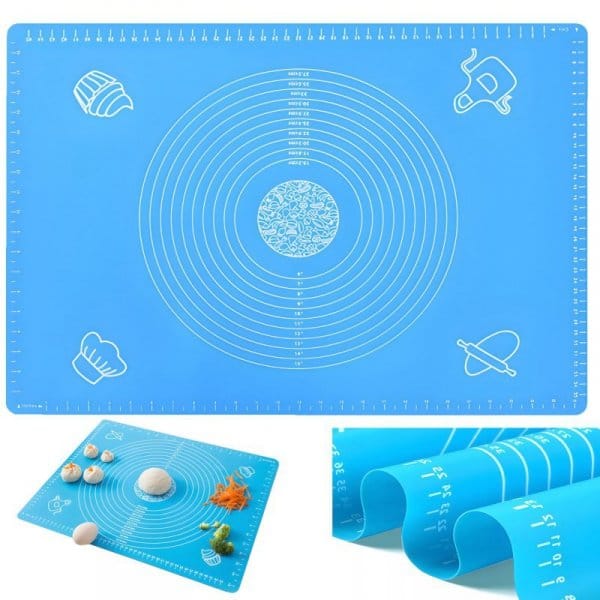 Kod producenta: 1030128Silikonowa stolnica kuchenna XXL z miarami to praktyczna i higieniczna podkładka idealna do przygotowywania ciasta, pierogów, pizzy i innych domowych wypieków. Wykonana z wysokiej jakości silikonu, odpornego na wysokie i niskie temperatury, zapewnia wygodę użytkowania, łatwość czyszczenia oraz trwałość. Dzięki elastycznej strukturze można ją zwinąć i przechować nawet w niewielkiej szufladzie. Wyposażona w miarki w centymetrach i calach oraz okrągłe podziałki, umożliwia precyzyjne wałkowanie ciasta.Cechy produktu: