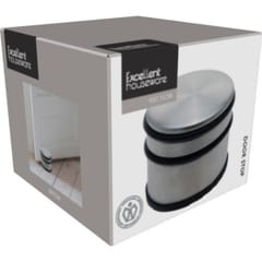 Ciężki ok. 1 kg, stoper drzwi zaopatrzony w elementy gumowe na spodzie i na obwodzie zabezpieczające podłogę i drzwi przed uszkodzeniem.