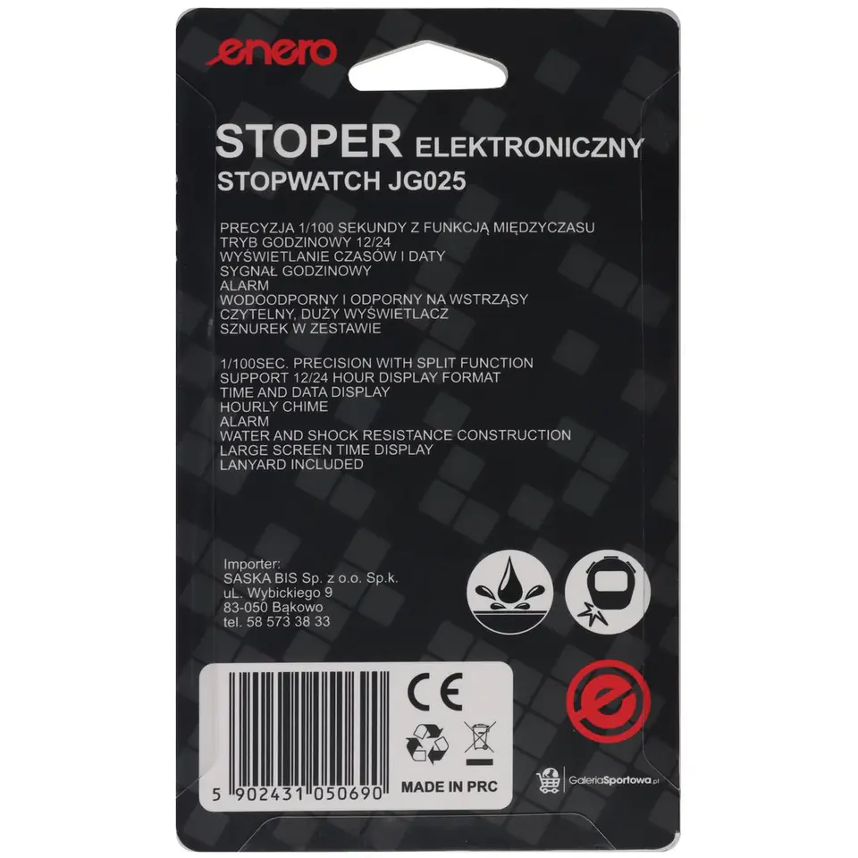 STOPER ELEKTRONICZNY 1 CZASOWY ENERO znajdzie zastosowanie w wielu dyscyplinach sportowych, podczas zajęć fitness i podczas zwykłych czynności domowych jak np. gotowanie. Dzięki niemu będziesz mógł kontrolować czas konkretnych odcinków na pływalni, podczas biegania, czy też wykorzystać go do pomiaru czasu serii ćwiczeń na siłowni i nie tylko!