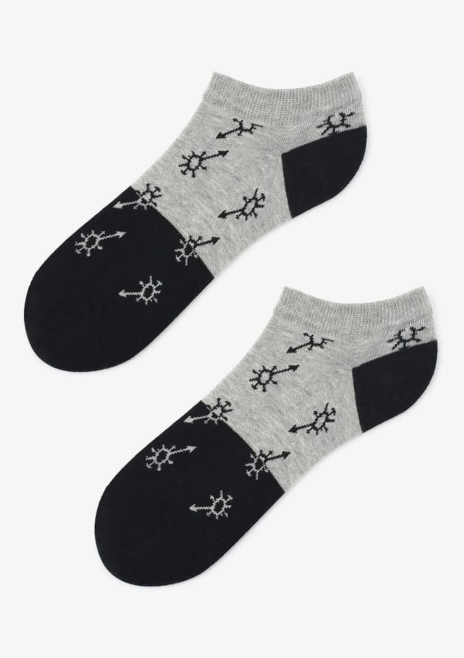 Stopki damskie dwukolorowe z wzorem. Wykonane z naturalnej bawełny najwyższej jakości. Płaski i miękki szew zapewni komfort noszenia.Skład: 80% bawełna, 15% poliamid, 5% elastan.