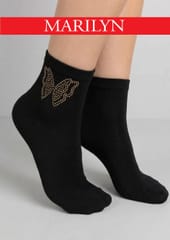 Bawełniane stopki damskie ozdobione motywem motyla z drobnych, połyskujących dżetów. Miękka, oddychająca bawełna i klasyczna długość sprawiają, że model dobrze układa się na stopie i sprawdza na co dzień. Skład: 80% bawełna, 15% poliamid, 5% elastan.