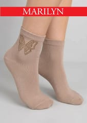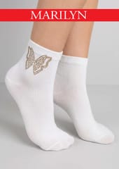 Bawełniane stopki damskie ozdobione motywem motyla z drobnych, połyskujących dżetów. Miękka, oddychająca bawełna i klasyczna długość sprawiają, że model dobrze układa się na stopie i sprawdza na co dzień. Skład: 80% bawełna, 15% poliamid, 5% elastan.