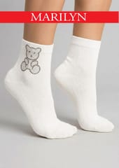 Bawełniane stopki damskie ozdobione motywem misia z drobnych, połyskujących dżetów.Miękka, oddychająca bawełna i klasyczna długość sprawiają, że model dobrze układa się na stopie i sprawdza na co dzień. Skład: 80% bawełna, 15% poliamid, 5% elastan.