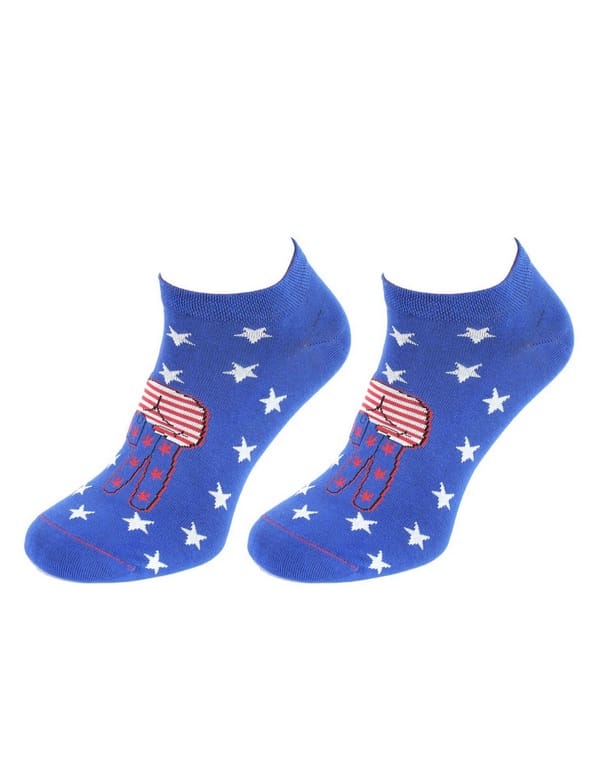 Stopki damskie z motywem flagi USA. Wykonane z bawełny najwyższej jakości. Płaski i miękki szew zapewni komfort noszenia. Skład: 80% bawełna, 15% poliamid, 5% elastan.