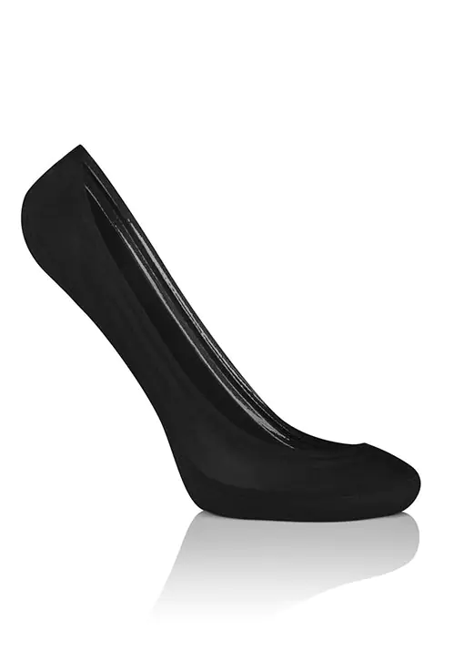 Stopki gładkie cięte laserowo z abs z przodu pod stopą. Od spodu podszyte dzianinową tkaniną. Dzięki silikonowi wstawionemu od góry stopki nie odstają i nie przesuwają się w butach. Skład: 90% poliamid, 10% elastan.