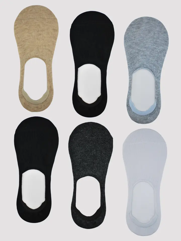 Gładkie, jednolite stopki wykonane z przyjemnej bawełny. Stopki z nieuciskającym ściągaczem z paskiem silikonu, który zapobiega zsuwaniu. Pakowane po 6 sztuk w kolorach biały, czarny, szary, grafit, beż. Skład: 75% bawełna, 20% poliester, 5% elastan.