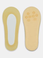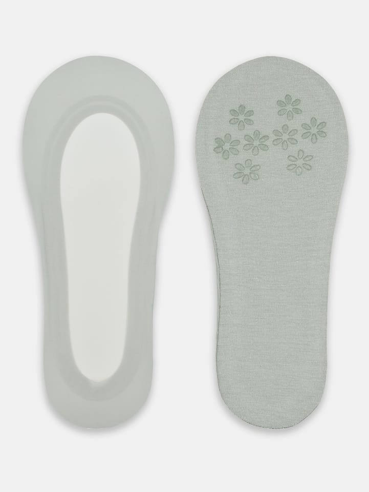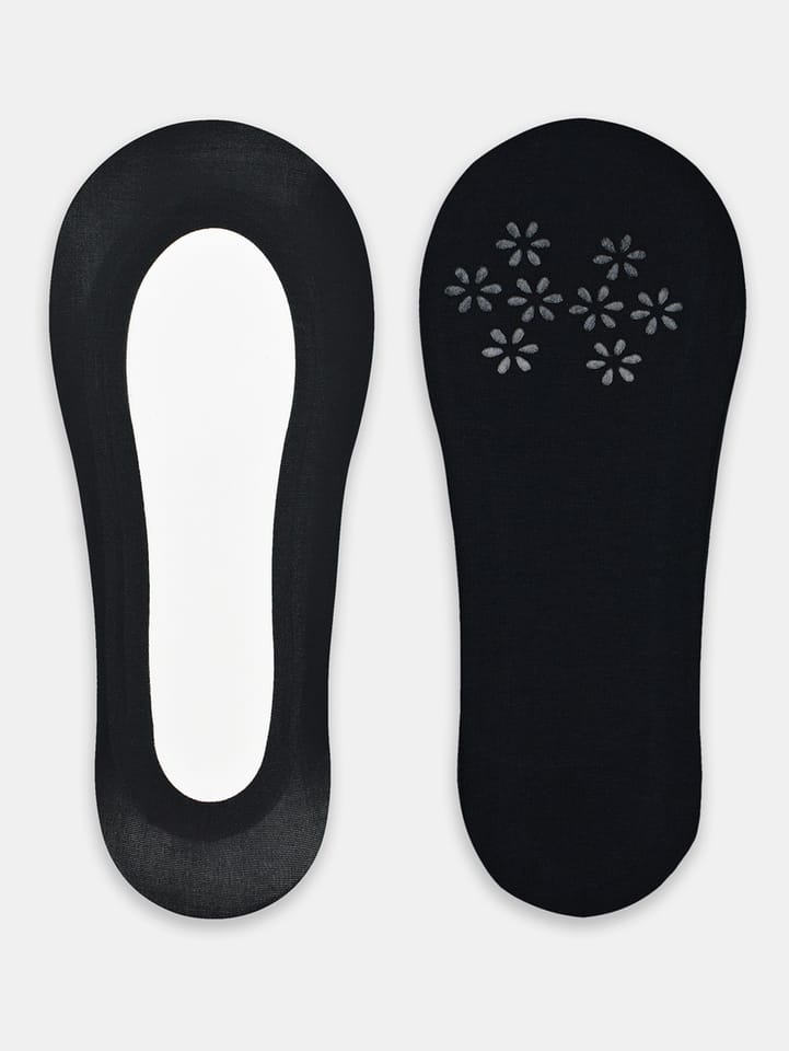 Balerinki damskie laserowo cięte z silikonem. Na bawełnianej podeszwie silikonowe kwiatki. Skład surowcowy: wierzch 73% poliamid, 27% elastan; podeszwa 95% bawełna, 5% elastan.