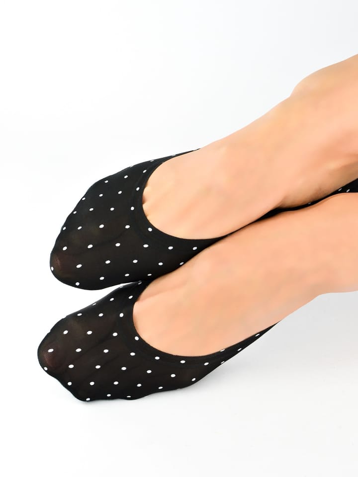 Balerinki damskie laserowo cięte z silikonem w delikatne kropeczki. Na bawełnianej podeszwie silikonowe kwiatki. Skład surowcowy: wierzch 73% poliamid, 27% elastan; podeszwa 95% bawełna, 5% elastan.