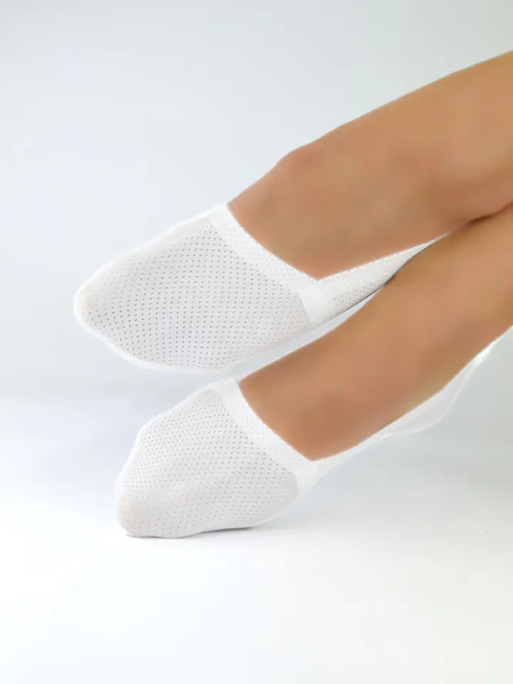 Balerinki damskie laserowo cięte wykończone silikonem. Skład surowcowy: wierzch 73% poliamid, 27% elastan; podeszwa 95% bawełna, 5% elastan