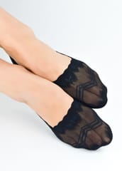 Balerinki damskie z mikrofibry, ściągacz z paskiem silikonu, zapobiega zsuwaniu, podeszwa z gładkiej bawełny z ABS. Skład: wierzch 83% poliamid, 17% elastan; podeszwa 93% bawełna, 7% elastan.