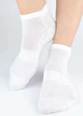Zakostki sportowe ze ściągaczem w środstopiu zapobiegającym zsuwaniu. Posiadają strefy wentylacyjne, zapiętek z "języczkiem" i wyprofilowaną piętę. Bardzo elastyczne, przyjemne w dotyku. Skład: 77% bawełna, 20% poliamid, 3% elastan.