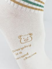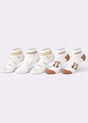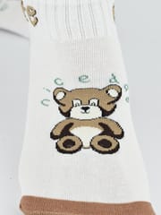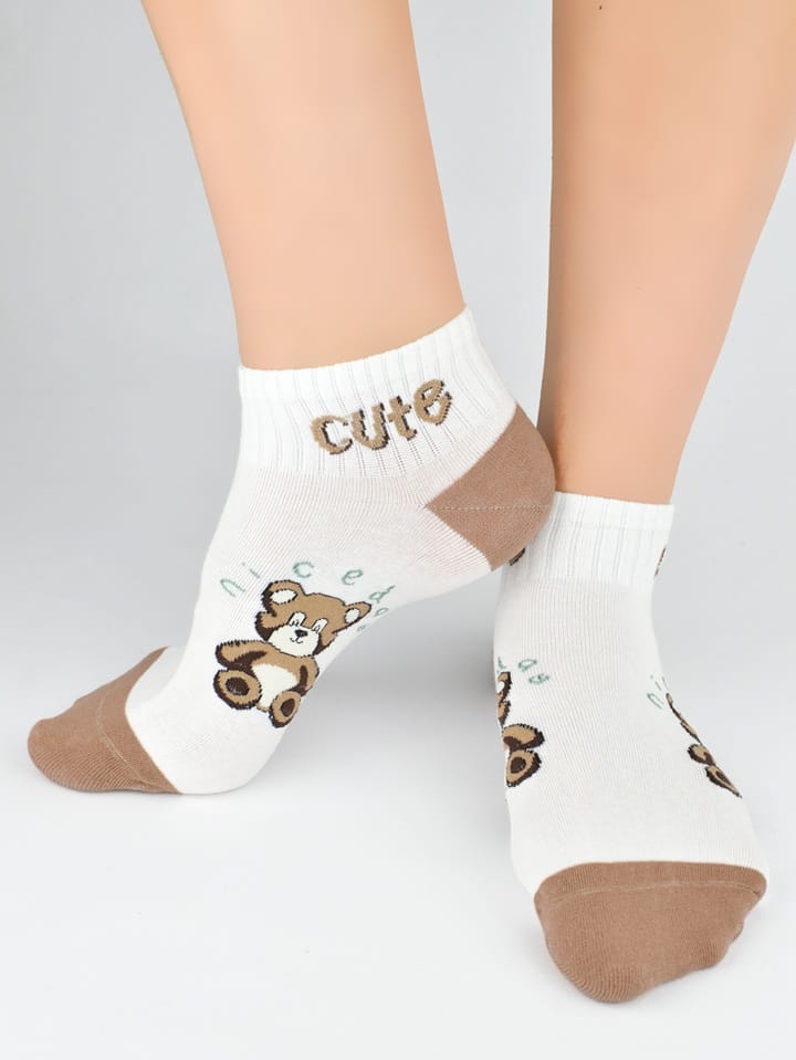 Bawełniane stopki damskie ozdobione wzorami w misie. Delikatne i miłe w dotyku, płaskie szwy i nieuciskający ściągacz. Skład: 75% bawełna, 22% poliester, 3% elastan