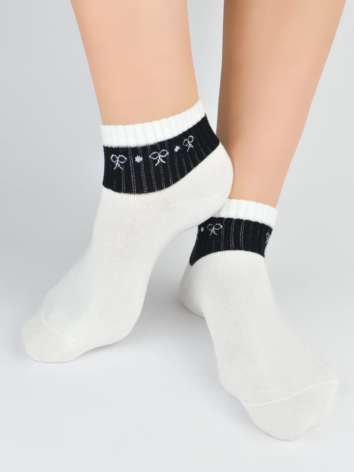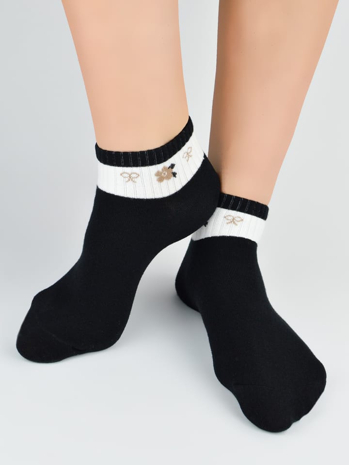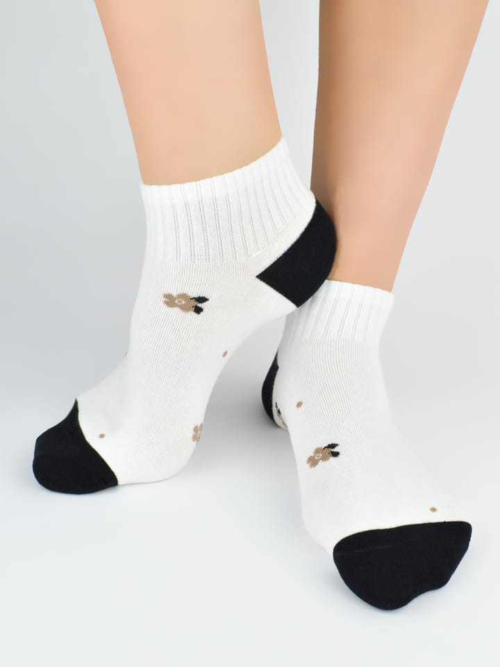 Bawełniane stopki damskie ozdobione wzorami. Delikatne i miłe w dotyku, płaskie szwy i nieuciskający ściągacz. Kolory pakujemy losowo. Skład: 75% bawełna, 22% poliester, 3% elastan