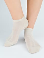 Skarpetki damskie wykonane z wysokiej jakości przędzy z nieuciskającym ściągaczem. Wyjątkowo delikatne i miłe w dotyku, ozdobione delikatnym wzorem. Idealnie dostosowują sie do stopy. Skład: 64% wiskoza, 16% poliamid, 16% bawełna, 4% elastan.