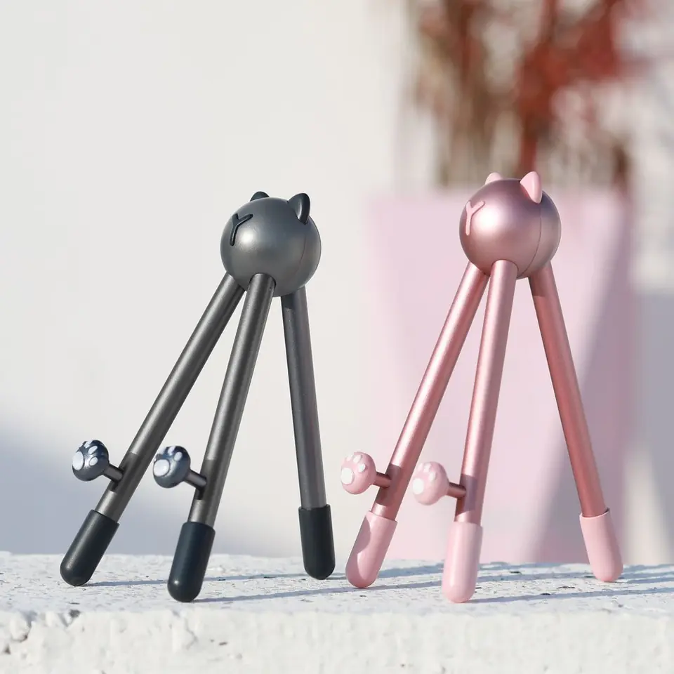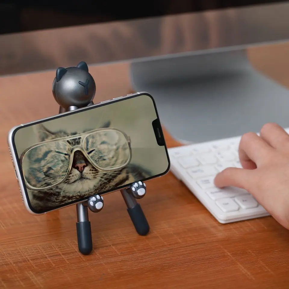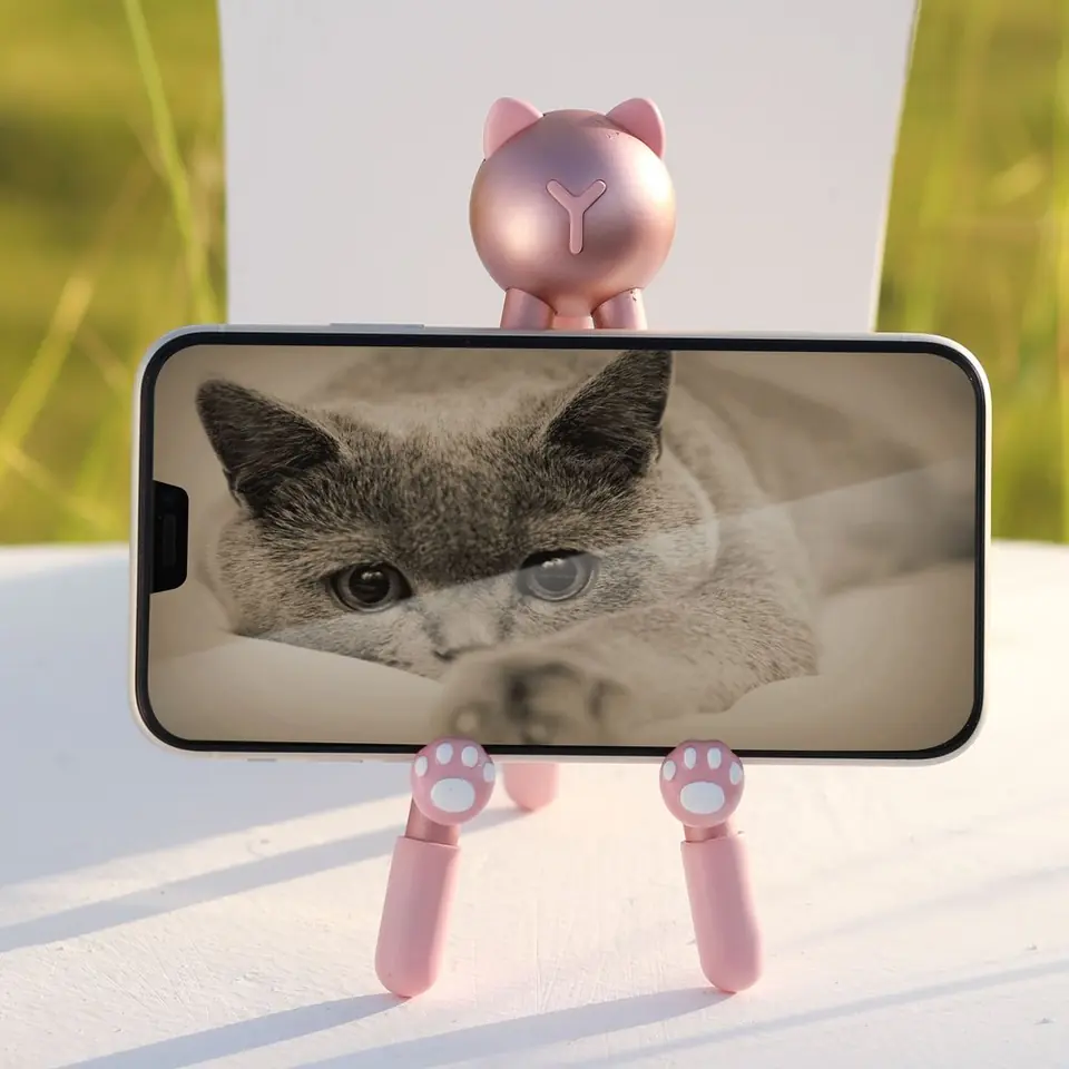 Nogi podstawki wykonano ze stali, a wykończono je gumowymi nasadkami. W ten sam sposób zabezpieczono przed przesuwaniem się uchwyty stabilizujące smartfon - "łapki kota". Wszystko to sprawia, że gadżet jest bardzo solidny i nie przemieszcza się pod wpływem ciężaru telefonu. Urządzenie jest więc zawsze pod ręką, dokładnie w takiej pozycji, jak sobie życzysz.