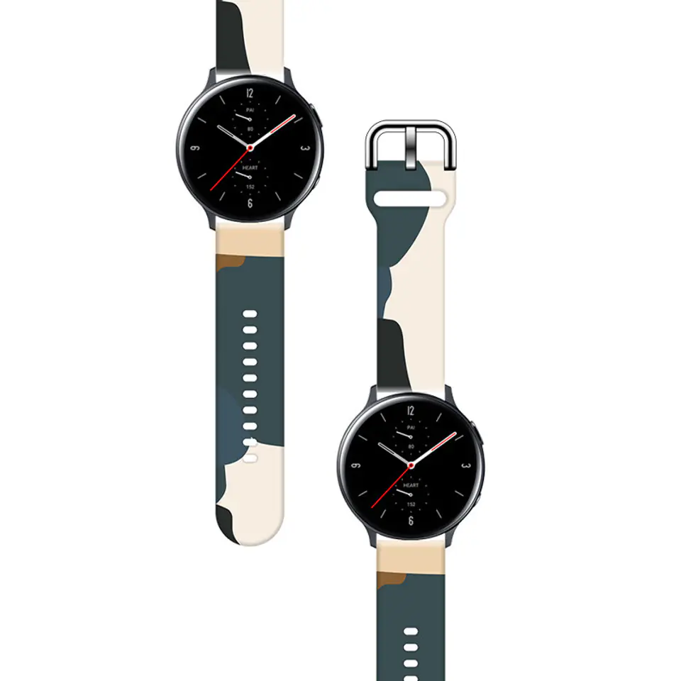 Kolorowa bransoletka do Samsung Galaxy Watch, model w niebanalnym wzorze moro. Bezproblemowy montaż nowej opaski sprawia, że od teraz możesz zmieniać swoje w sposób dokładnie taki, jak sobie zażyczysz.