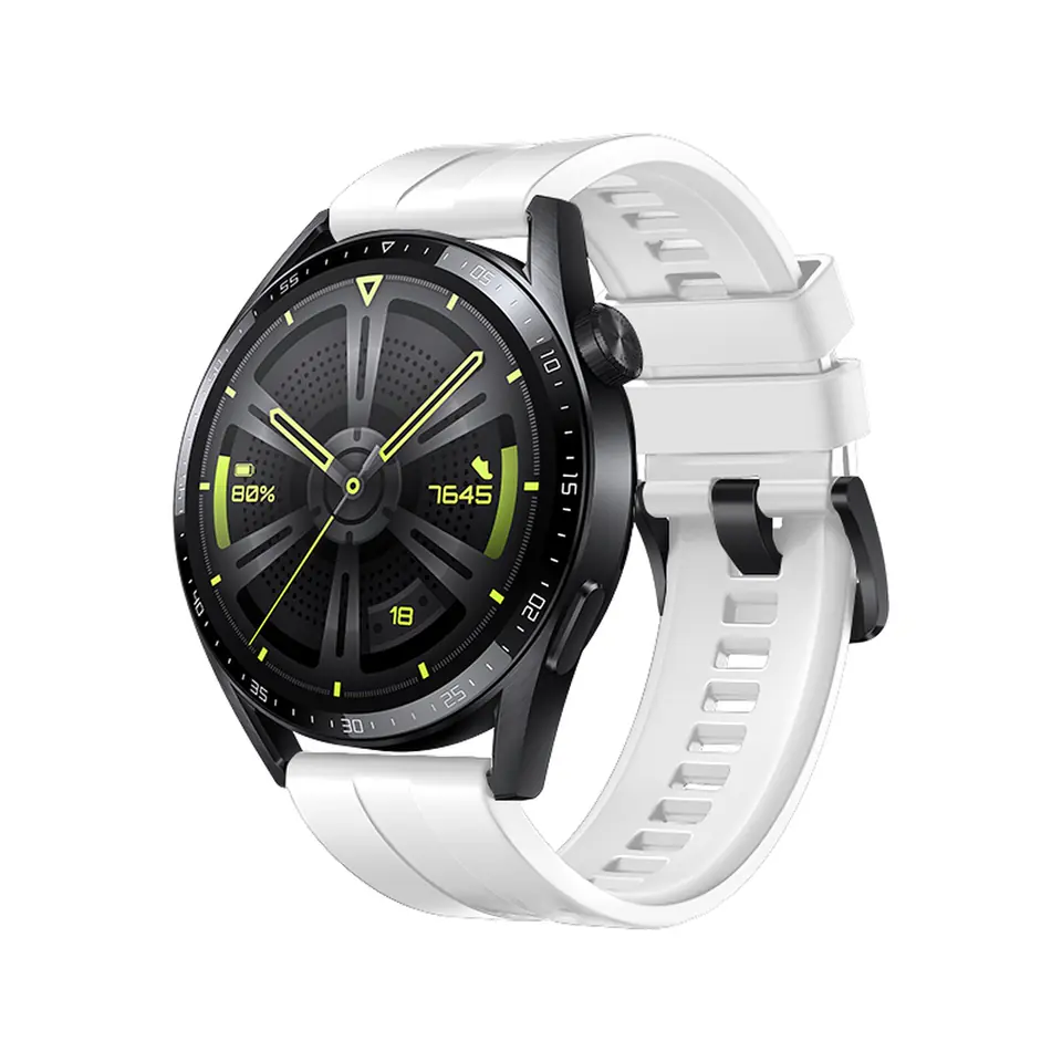 Elastyczna, silikonowa opaska do Huawei Watch oraz wszelkich zegarków z rozstawem mocowań 22 mm. Lekki i solidny pasek został stworzony dla osób, które preferują minimalistyczne rozwiązania. Łatwy montaż i demontaż za pomocą załączonych szlufek z blokadą pozwala dowolnie zmieniać oprawę zegarka, dopasowując ją do indywidualnego stylu lub okazji.