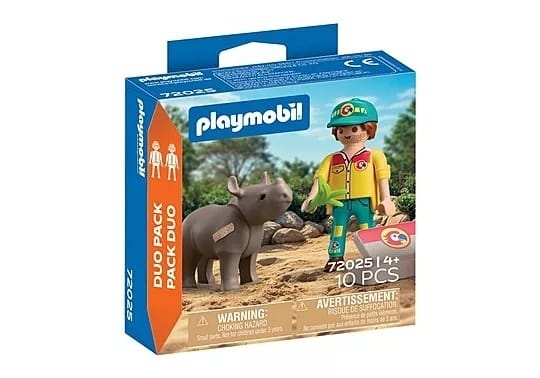 Ranger spieszy z apteczką pod ręką na pomoc małemu nosorożcowi, by pomóc mu wyzdrowieć i poczuć się znów bezpiecznie. Dzieci mogą przykleić kolorowe naklejki-plastry i przechylać głowę zwierzaka, ożywiając scenę. Ten wyjątkowy zestaw PLAYMOBIL DuoPack zachęca do opiekuńczej zabawy i przygód pełnych wyobraźni. Uroczy dodatek do każdej kolekcji PLAYMOBIL z dziką przyrodą – idealny dla małych miłośników zwierząt i przyszłych opiekunów!