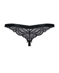 Stringi, które zostały zaprojektowane z myślą o...miłosnych uniesieniach! Pikantny krój typu open, ozdobiony czarną koronką. Tył słodko akcentuje pośladki, zwieńczony kokardką. W pasie - stylowa, płaska gumka. Skład: 90% poliamid, 10% elastan.