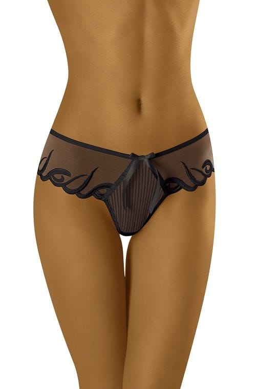 Kochasz wygodę szortów i jendocześnie seksowny urok stringów? Tu masz 2 w 1. Nieco pełniejszy krój bielizny nawiązuje do szortów, zaś tył na pasku to ukłon w stronę stringów. Całość wykonano z efektownie zdobionego tiulu, który zmysłowo prześwituje. Skład: 83% poliamid, 17% elastan.
