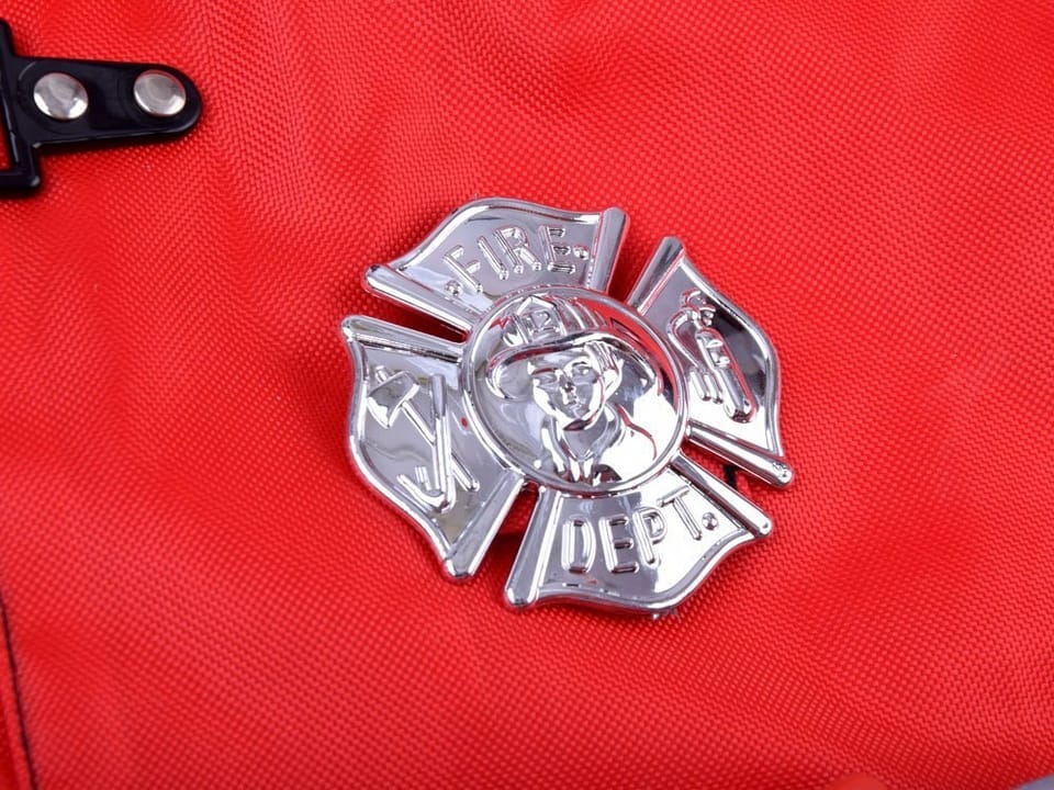 Każdy mały chłopiec marzy aby zostać strażakiem i gasić płomienie, a my wychodząc na przeciw tym marzeniom oferujemy fantastyczny strój dla małego bohatera. Oprócz pięknej czerwonej kurtki i hełmu strój zawiera mnóstwo potrzebnych akcesoriów między innymi młotek, krótkofalówkę...Strój Strażaka z dużą ilością akcesoriów. Zestaw jest świetnie wykonany, nie brakuje w nim najbardziej potrzebnych przyrządów dla naszego bohatera:)W zestawie znajduje się:- kurtka (ob. klatki 84cm, dł. 62cm, dł. rękawa od kołnierza 47cm, szr.rękawa 16cm)- hełm z opuszczaną szybą (regulacja obwodu 47cm - 53cm)- toporek strażacki (28cm)- łom (30cm)- krótkofalówka (13cm)- gaśnica / spryskiwacz (24cm)- odznaka (5,5cm)- etui wraz z legitymacja strażaka (9cm x 7cm)Do gaśnicy można wlać wodę i będzie służyć jako spryskiwacz! Zestaw świetnie nadaje się na zabawę, karnawał, bal przebierańców itp. Zestaw jest świetnie dopracowany i zapewne sprawdzi się na niejednym balu karnawałowym a także w zabawie na podwórku.Zapakowany jest w przeźroczystą foliową torbę z wieszakiem. Świetnie nadaje się na prezent.