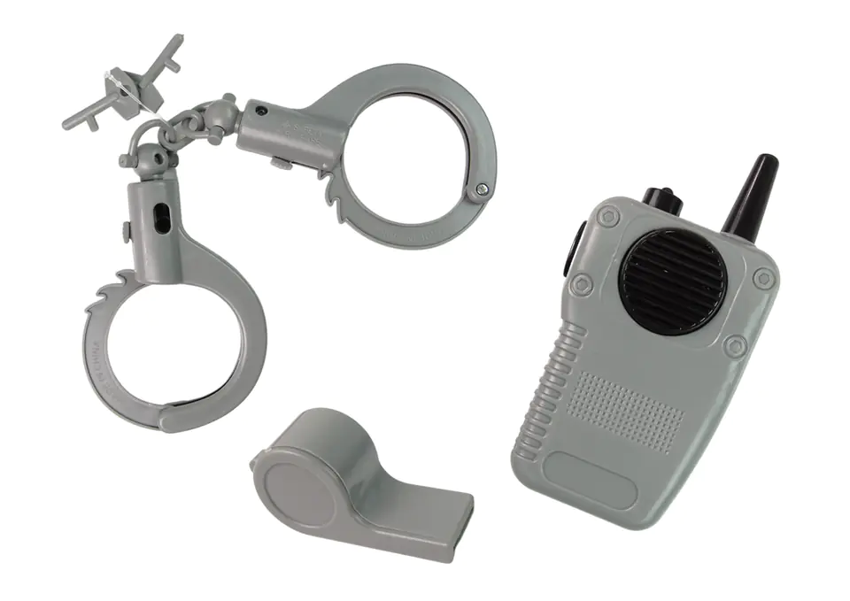 Dołączona do zestawu krótkofalówka uruchamia syrenę policyjną. Wystarczy nacisnąć przycisk po jej boku. Charakterystyczny dźwięk kojarzący się z zawodem policjanta.
