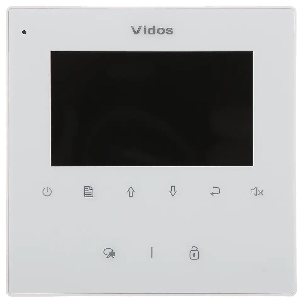 | Wybrane cechy: | Okablowanie - 2 żyły bez polaryzacji, Plug & Play, Ultra-płaski monitor bezsłuchawkowy, głośnomówiący, Podświetlany, dotykowy panel sterujący, Wbudowany mikrofon, Wbudowane głośniki, Komunikacja dwukierunkowa, Możliwość rozbudowy systemu o dowolne 3 dodatkowe panele wewnętrzne lub unifony serii VIDOS DUO Tryb "nie przeszkadzać" - wyciszenie urządzenia na określony przez użytkownika czas, Liczba dźwięków dzwonka : 12 Obsługa do 4 stacji bramowych - Moduł M-SM4, Podgląd obrazu z bramofonu z możliwością włączenia dźwięku i otwarcia furtki, Sterowanie elektrozaczepem i bramą automatyczną, Adresowany interkom wewnętrzny i zewnętrzny, Funkcja interkomu i przekierowania rozmowy, Obsługa do 4 dodatkowych kamer CCTV - podgląd z kamer możliwy poprzez dodatkowy moduł M-K4, Sterowanie oświetleniem poprzez dodatkowy moduł B5, Menu ekranowe OSD |