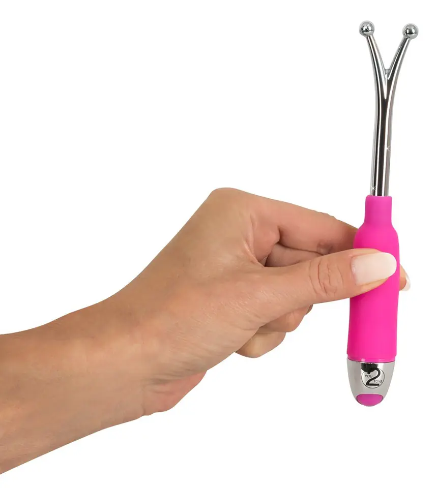 Specjalny wibrujący drążek z dwoma kulkami na końcówkach do stymulacji łechtaczki, sutków i męskich organów. 7 trybów wibracji. Całkowita długość 16,5 cm. Kolor: różowy / srebrny. Metal, silikon, powłoka PU. W komplecie baterie (3 x LR44).