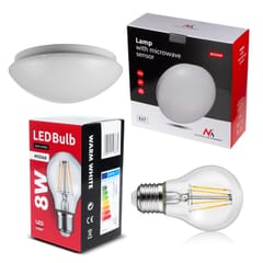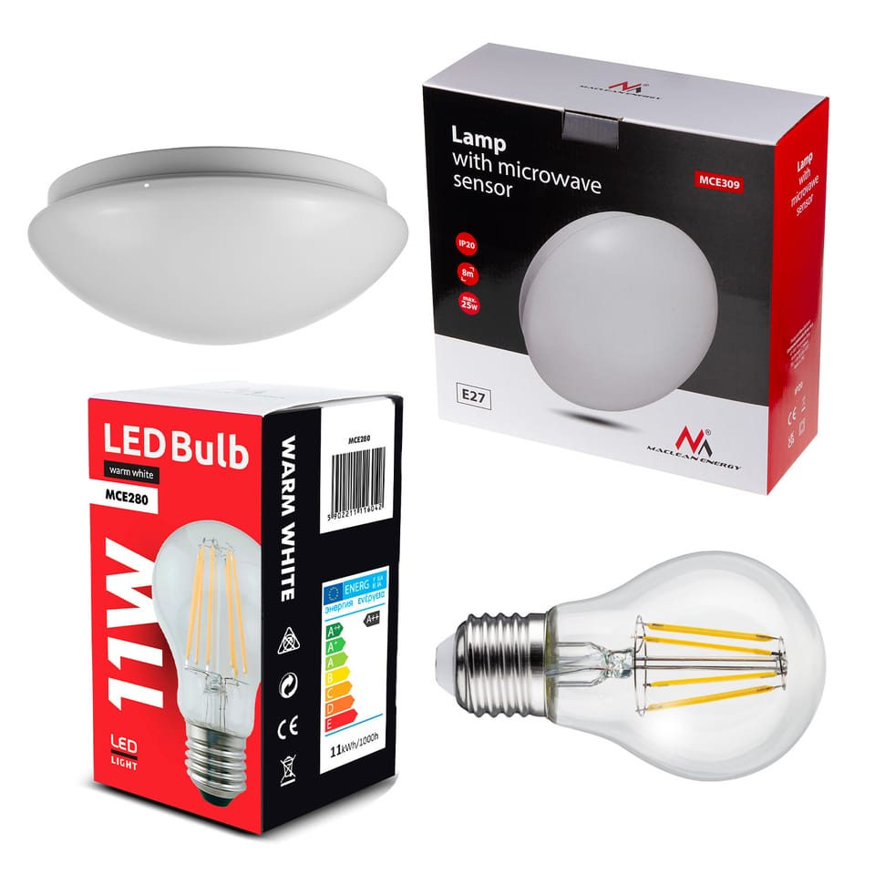 Sufitowa lampa 1xE27 z czujnikiem Maclean, czujnik mikrofalowy, klosz PMMA, max. obciążenie 25W, IP20, MCE309