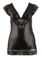 Czarna sukienka z wetlooku z koronkowymi wstawkami na rękawach, w okolicach biustu oraz na dole. Materiał: 92% poliester, 8% elastan, koronka 90% poliamid, 10% elastan.